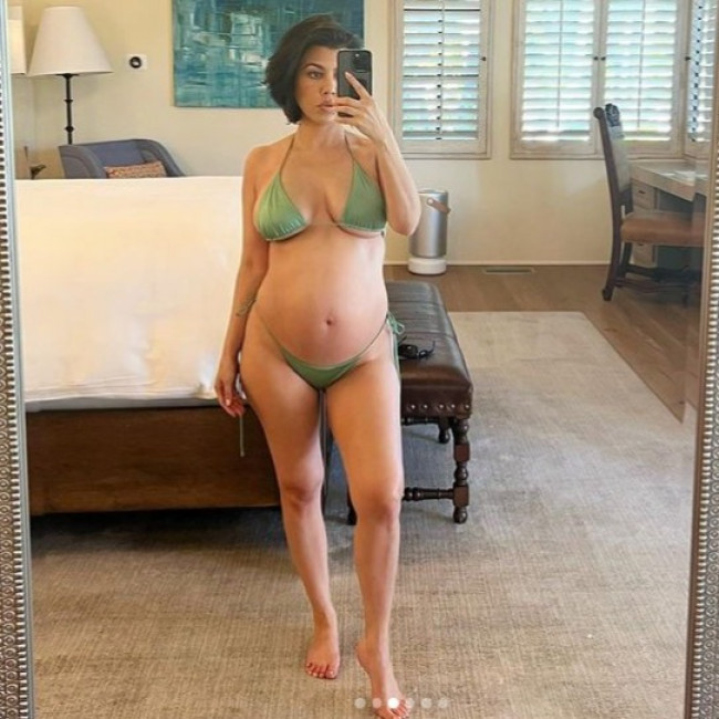Kourtney Kardashian está mostrando su panza en nuevas fotos en bikini.